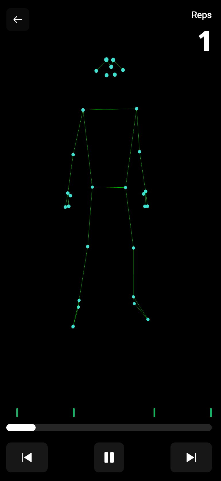 Introduced a motion replay feature, allowing users to review workout sessions, navigate mistakes, and visualize 3D pose data with interactive controls.